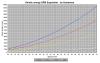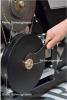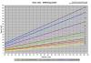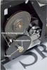 Das Massenträgheitsmoment des Atheleten beim Radfahren ist in erster Linie dafür verantwortlich, dass der Tretzyklus beim Radfahren eine annähernd konstante Winkelgeschwindigkeit aufweist, obwohl das Drehmoment (Leistung) des Radfahrers in vertikaler Stellung der Kurbeln fast bei Null liegt. Hätte das Ergometer keine Schwungmasse, würde bei hoher Leistung bei dieser Kurbelstellung die Tretfrequenz fast auf Null abfallen, der Tritt würde dann sehr ´unrund´ werden. In den folgenden Abbildungen ist angegeben, wie man mit Hilfe der beiden Schwungmassen und dem Getriebe eine annähernd dem Fahrergewicht identische Schwungenergie einstellen kann. Die kinetische Energie des Radfahrers ist dabei gleich der Rotationsenergie der Schwungscheiben. Die Kinetische Energie des Radfahrers ist: E = v² x m/2 Es muss allerdings bei leistungsdiagnostischen Untersuchungen berücksichtigt werden, dass die Regelschwankung auf den einzelnen Leistungsstufen linear zur Schwungmassengröße ansteigt. Will man eine möglichst geringe Regelschwankung, fährt man ohne Zusatzmasse im 3. oder 4. Gang am besten. Es ist auch hilfreich auf eine kleinere Übersetzung zu schalten, wenn die Leerlaufreibung des Ergometers im 3. oder 4. Gang höher als die Anfangsleistung beim Stufentest ist. Im 4. Gang ist die Leerlaufreibung bei 90 Umdrehungen etwa 80 Watt, im 1. Gang etwa 50 Watt. Demzufolge ist es nicht möglich Leistungswerte unter 50 Watt zu regeln. Die Schwungscheiben können nach Entfernen des linken Ergometerdeckels durch Lösen der messingfarbenen Sicherungsmutter einfach gewechselt werden. Es reicht, die Sicherungsmutter handfest anzuziehen. Die kleine Schwungscheibe wiegt 4,6 kg, die große Schwungscheibe 9,1 kg. | |