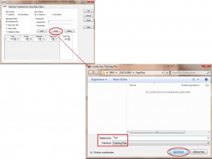 - Wählen Sie Predefined File und klicken Sie zum Erzeugen eines neuen Tests auf Create. Unter Dateiname können Sie dem Test einen Namen geben (hier: "Test"). Bei Dateityp müssen Sie keine Änderungen vornehmen. Klicken sie dann auf Speichern.